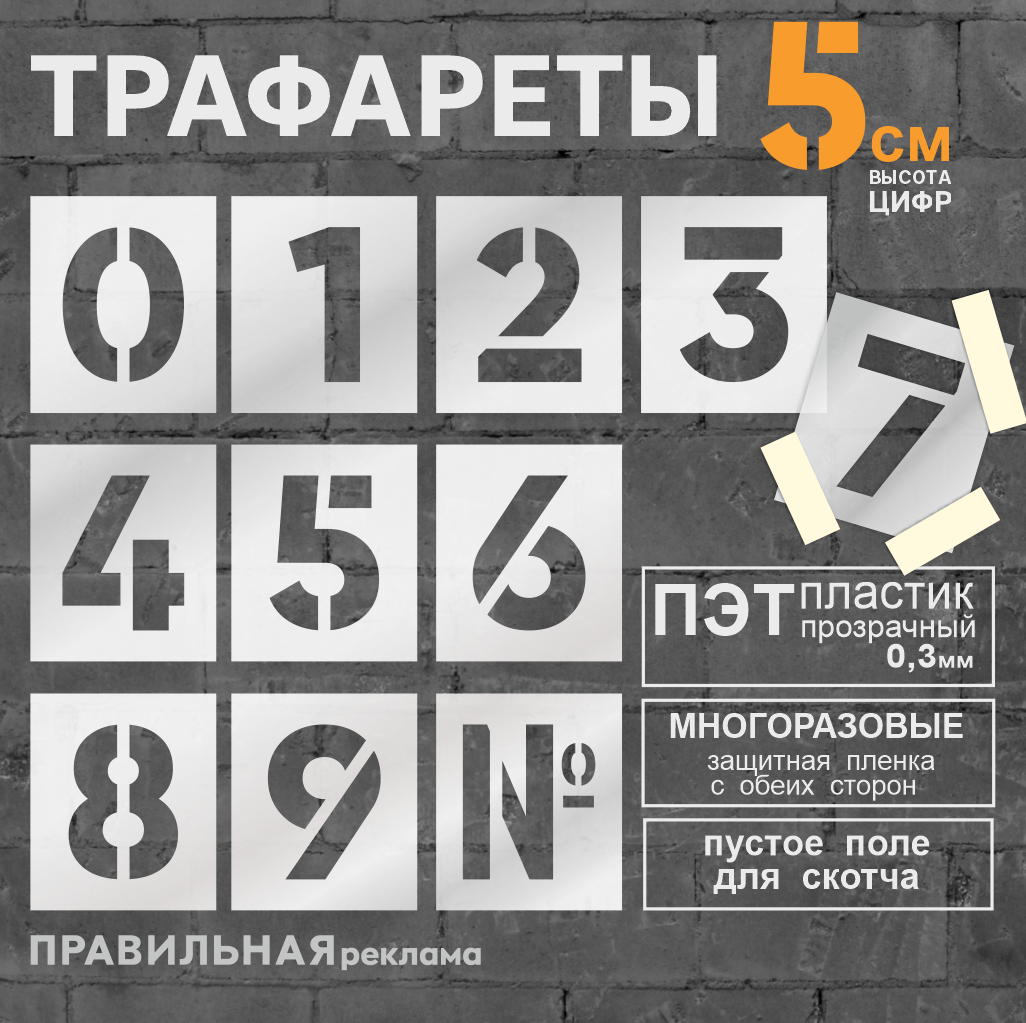Отзывы на Многоразовый трафарет "Цифры" 11 шт. высота цифр 5 см. (Прозрачный пластик 0,3 мм) - Правильная Реклама.