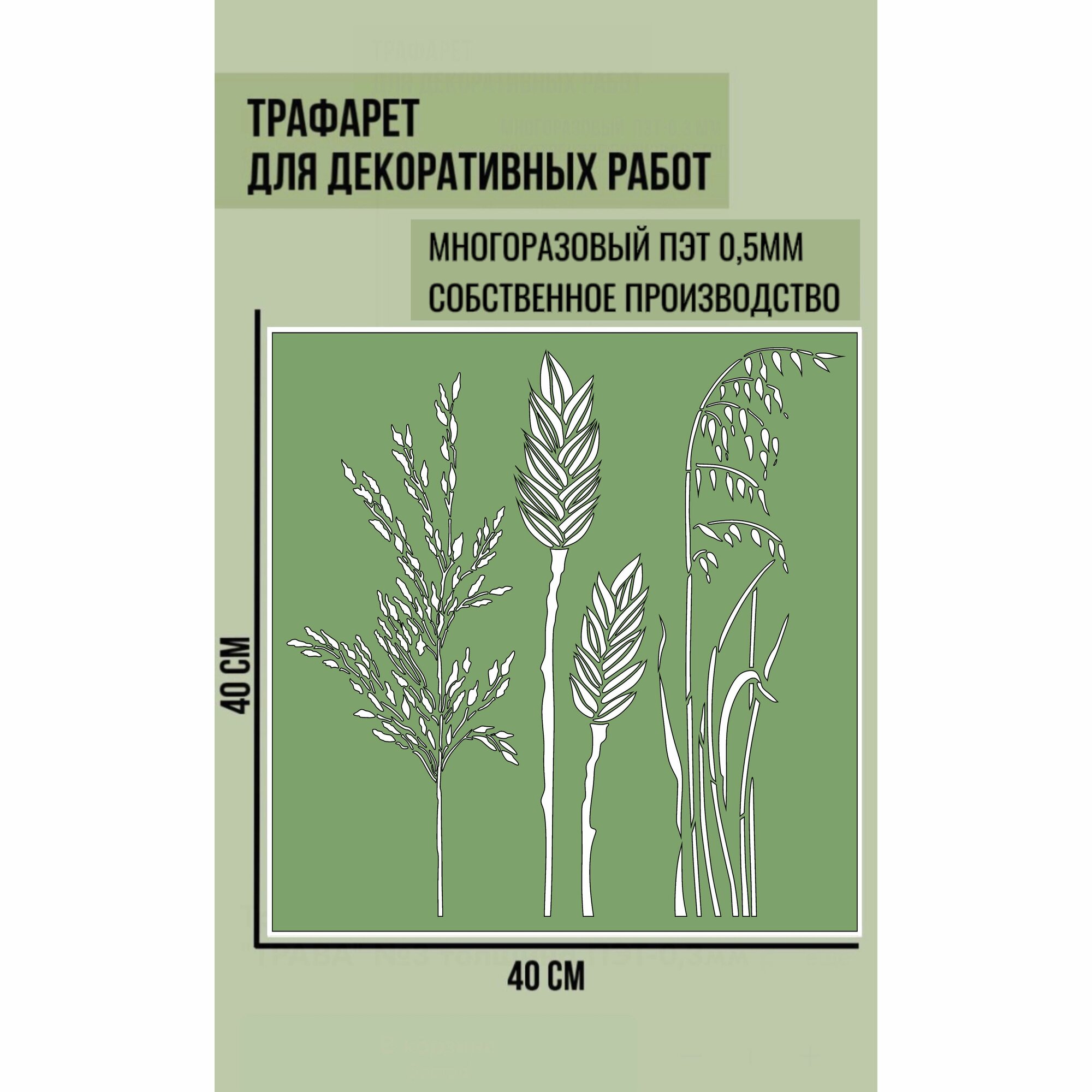 Отзывы на Трафарет для декора и стен/trafaret-spb/ серия "трава" №3 толщина ПЭТ-0,5мм размер 40*40 см для штукатурки и краски
