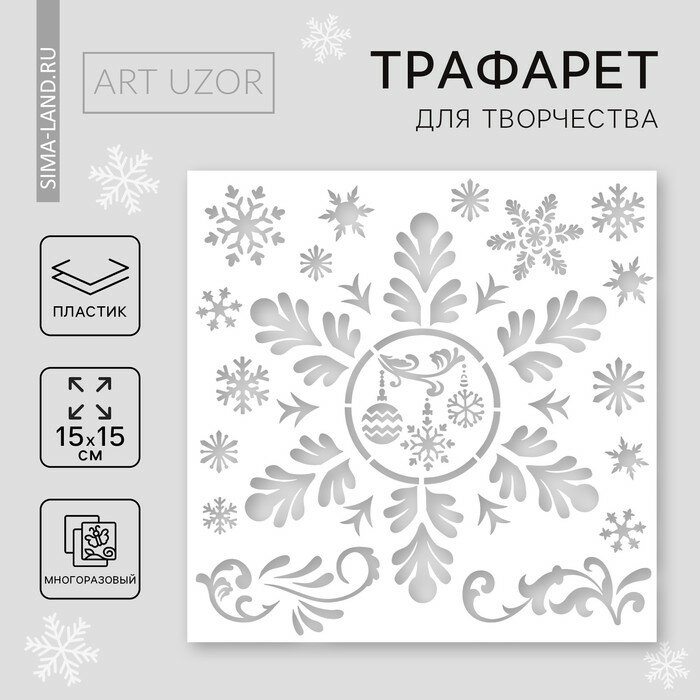 Трафарет для творчества «Снежинки», 15 х 15 см, пластик информация: