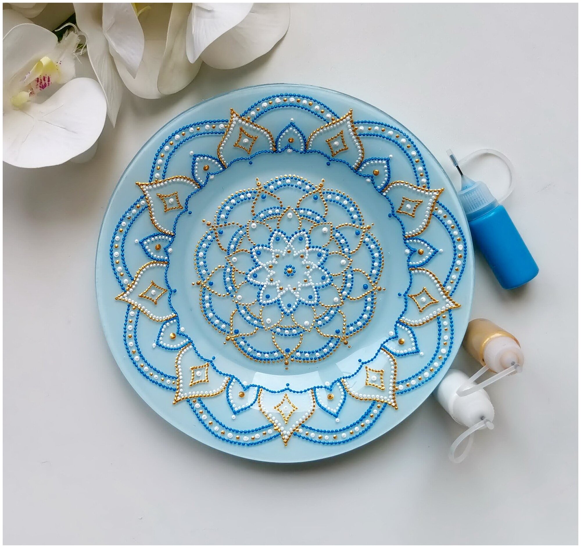 | Подробная комплектация | Стеклянная тарелка (D19,6см); Эскиз; Контуры -3 цветов; Краска для фона - 1 шт; Губка - 1 шт; Вспомогательные материалы; Подставка. |