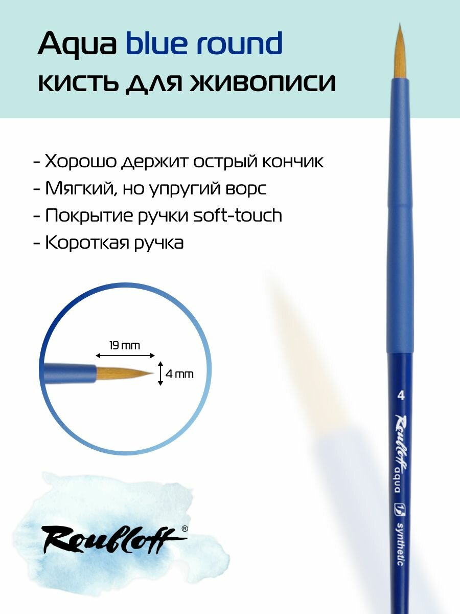Roubloff Кисть Aqua Blue Round № 4 круглая из синтетики для акварели, короткая ручка информация: