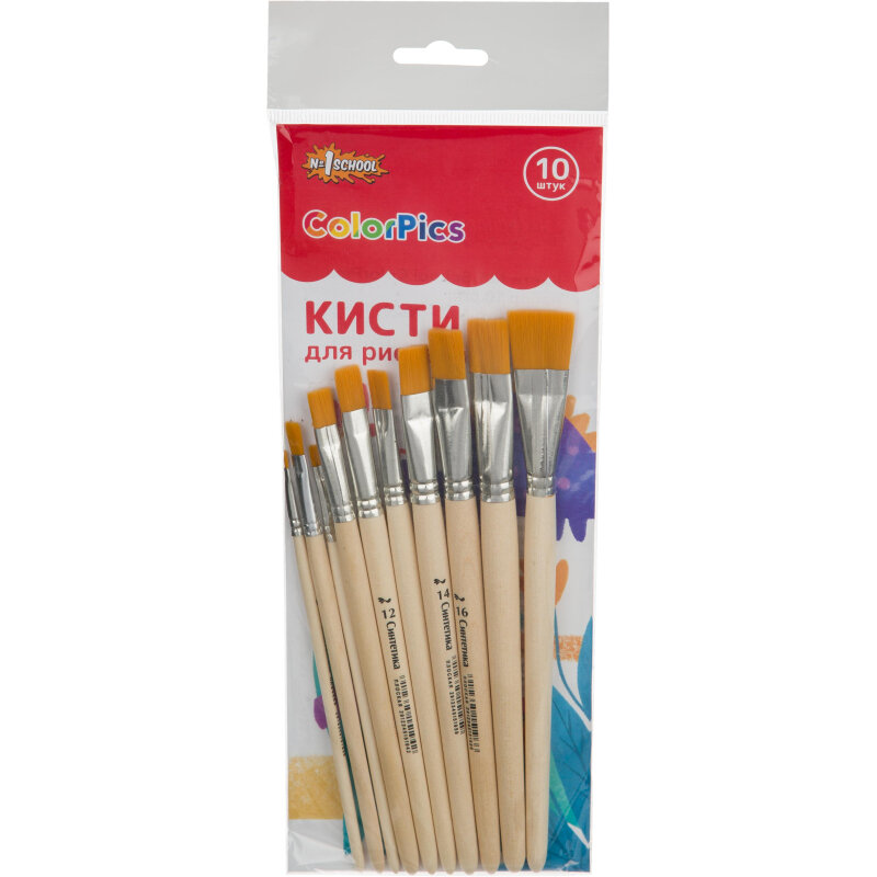 Кисти для рисования №1 School, плоские, синтетика, 10 штук информация: