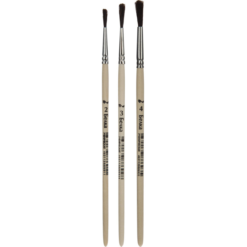 Кисть набор 3 шт №1 School Шустрики белка ученическая круглая №2, №3, №4