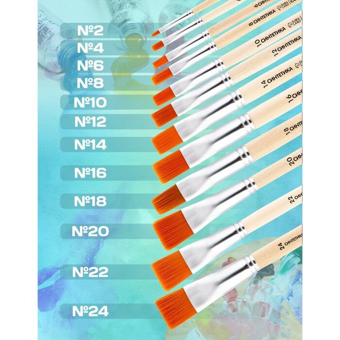 Набор кистей синтетика плоские 5 штук (№2,4,6,8,10), в блистере 7711371