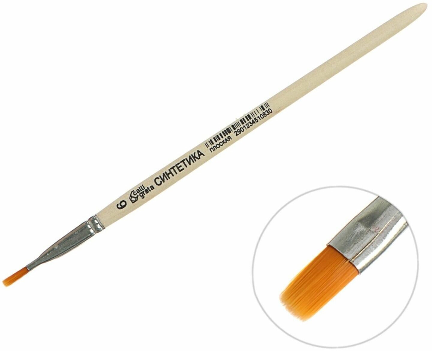 Кисть Синтетика Плоская № 6 (ширина обоймы 6 мм; длина волоса 10 мм), деревянная ручка, информация: