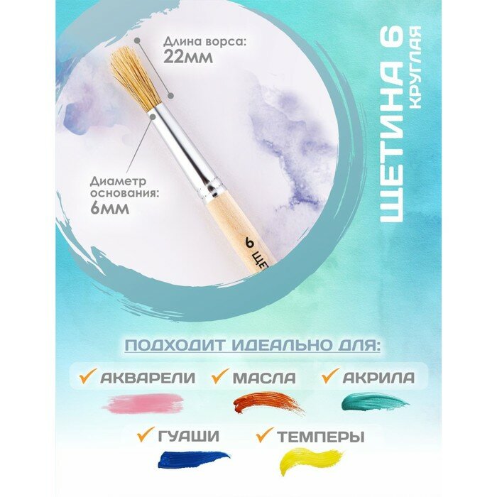 Отзывы на Кисть Щетина круглая № 6 (диаметр обоймы 6 мм; длина волоса 22 мм), деревянная ручка, Calligrata