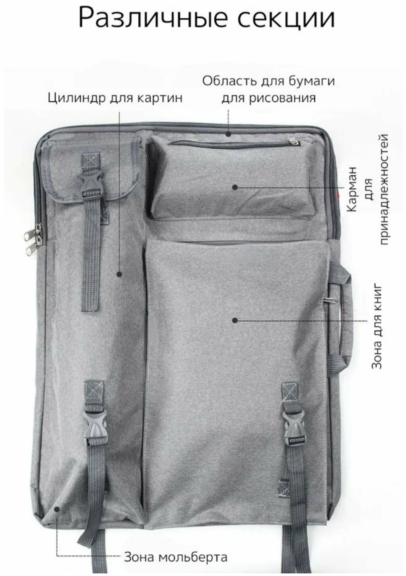 Сумка для художника А2 SoulArt, 66х49 см, серая информация: