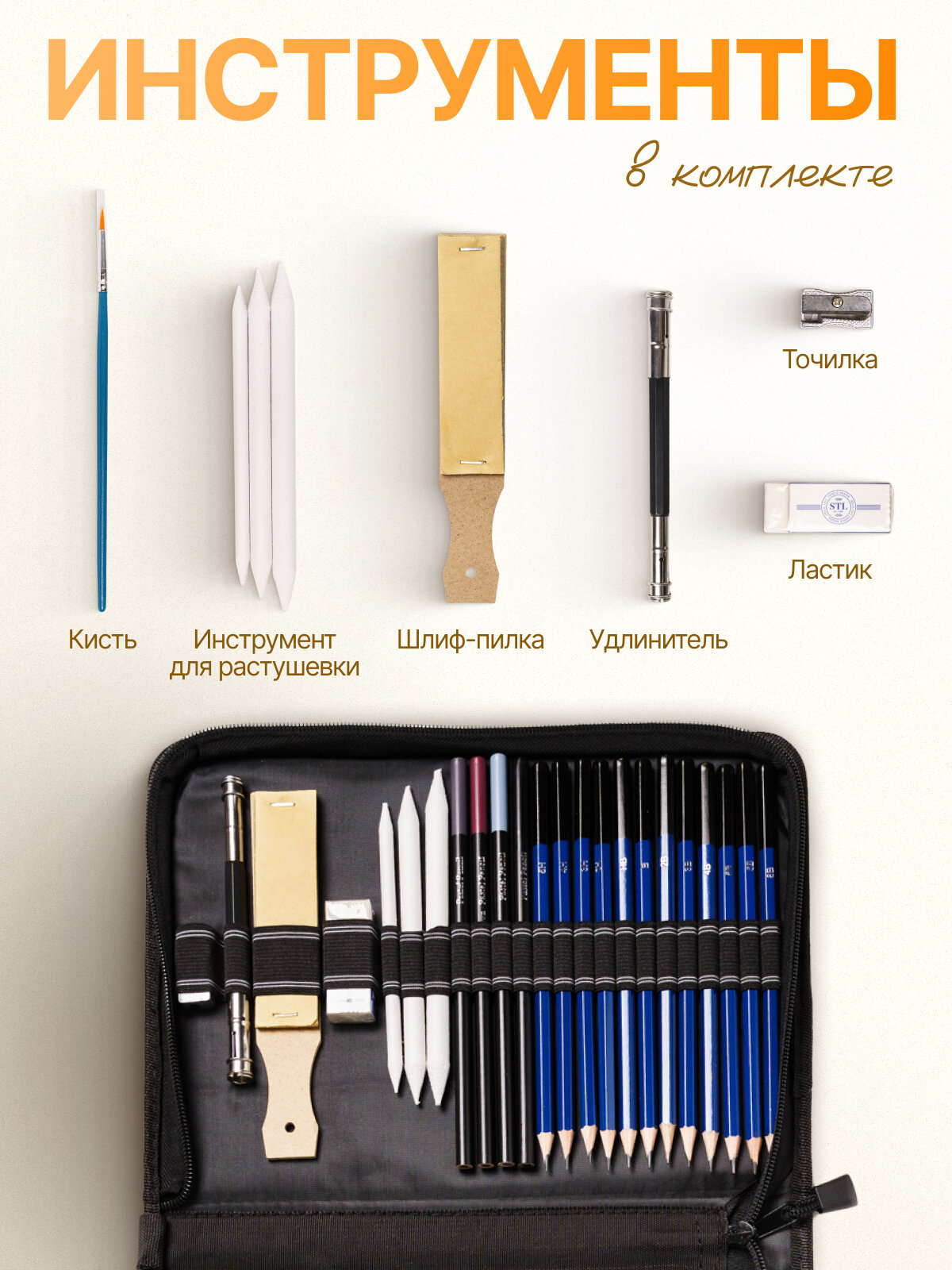 Профессиональный набор карандашей и аксессуаров для рисунка и графики 28 предметов 1 300 ₽