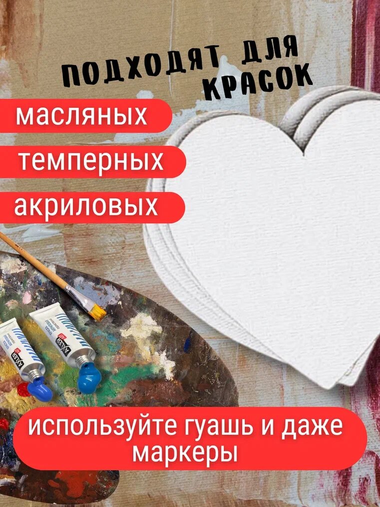 Отзывы на Холсты для рисования AXLER Art маленькие мини полотна для акриловых масляных и др красок, набор 4 шт на магните, белые грунтованные акрилом, сердце