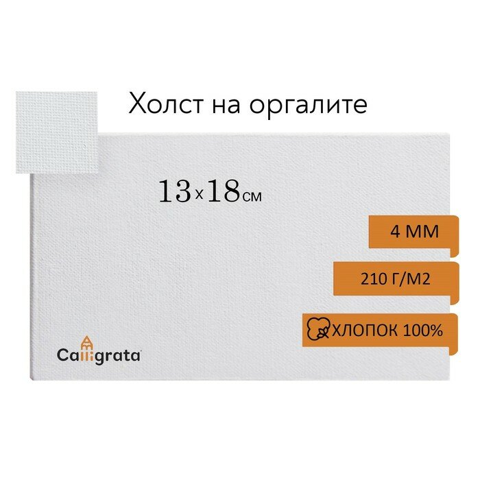 Холст на оргалите 4 мм, 13 х 18 см, хлопок 100%, акриловый грунт информация: