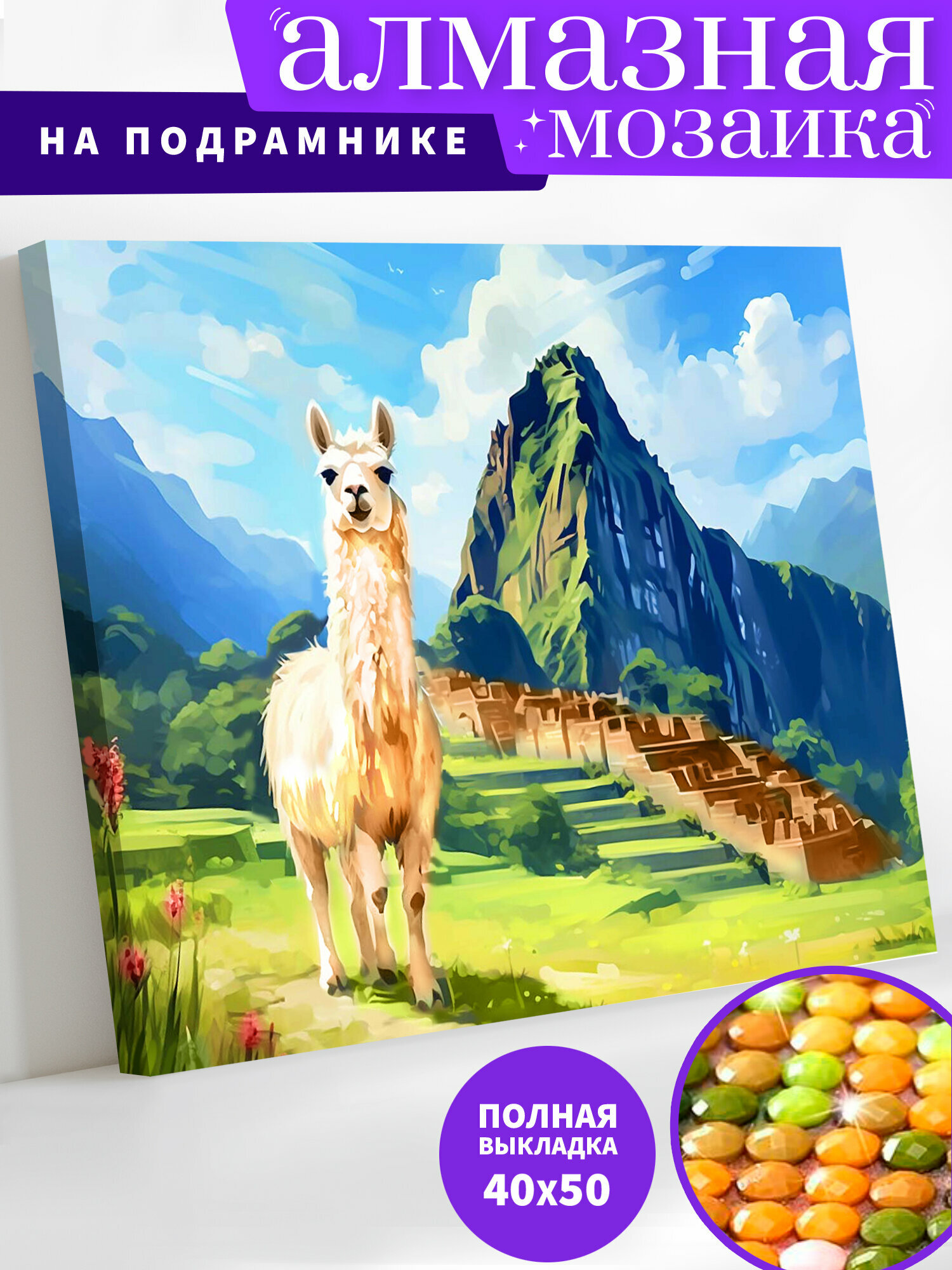 10 цен на Алмазная мозаика на подрамнике 40х50 см "Лама в горах". Алмазная вышивка. Картина стразами