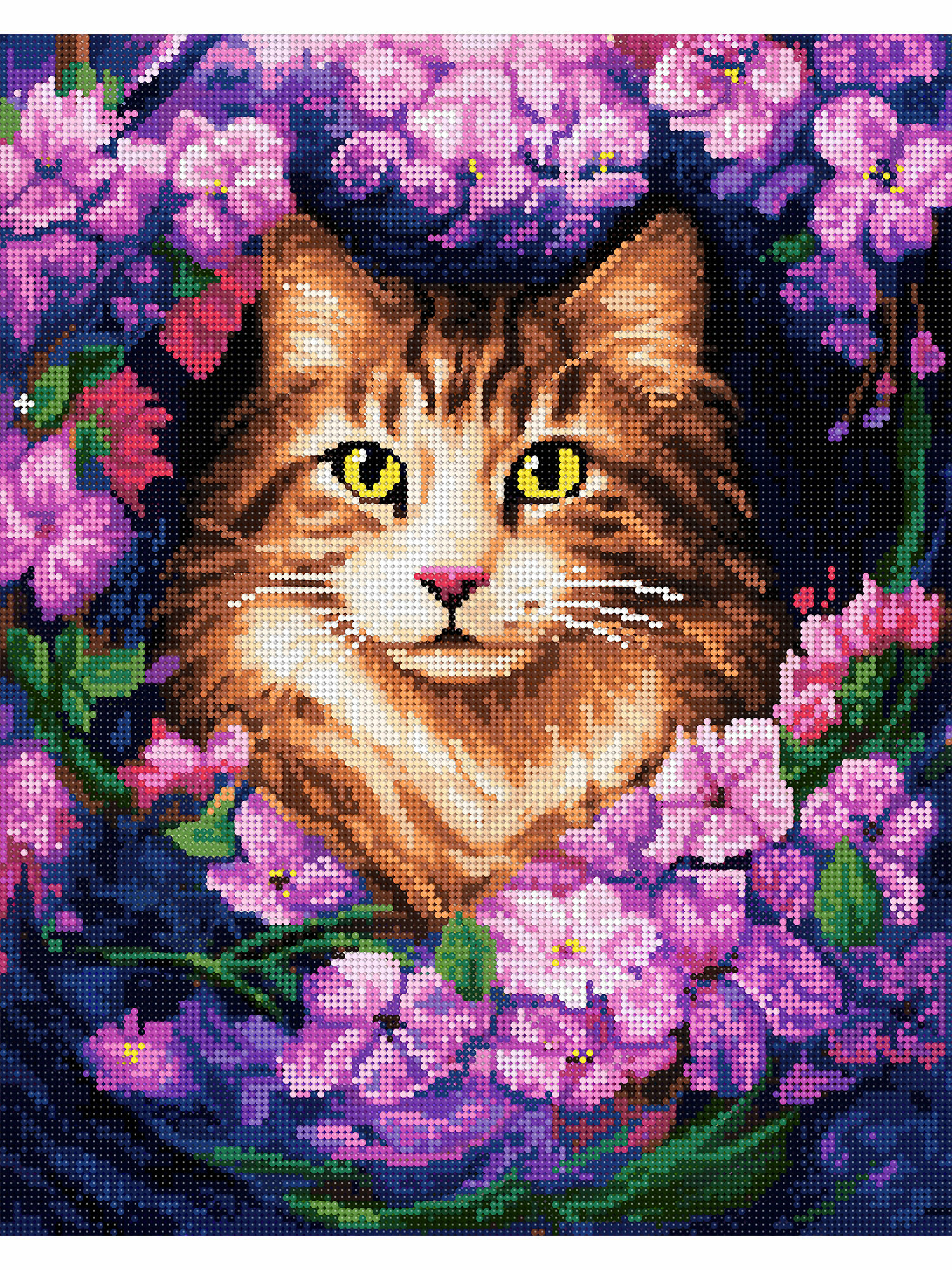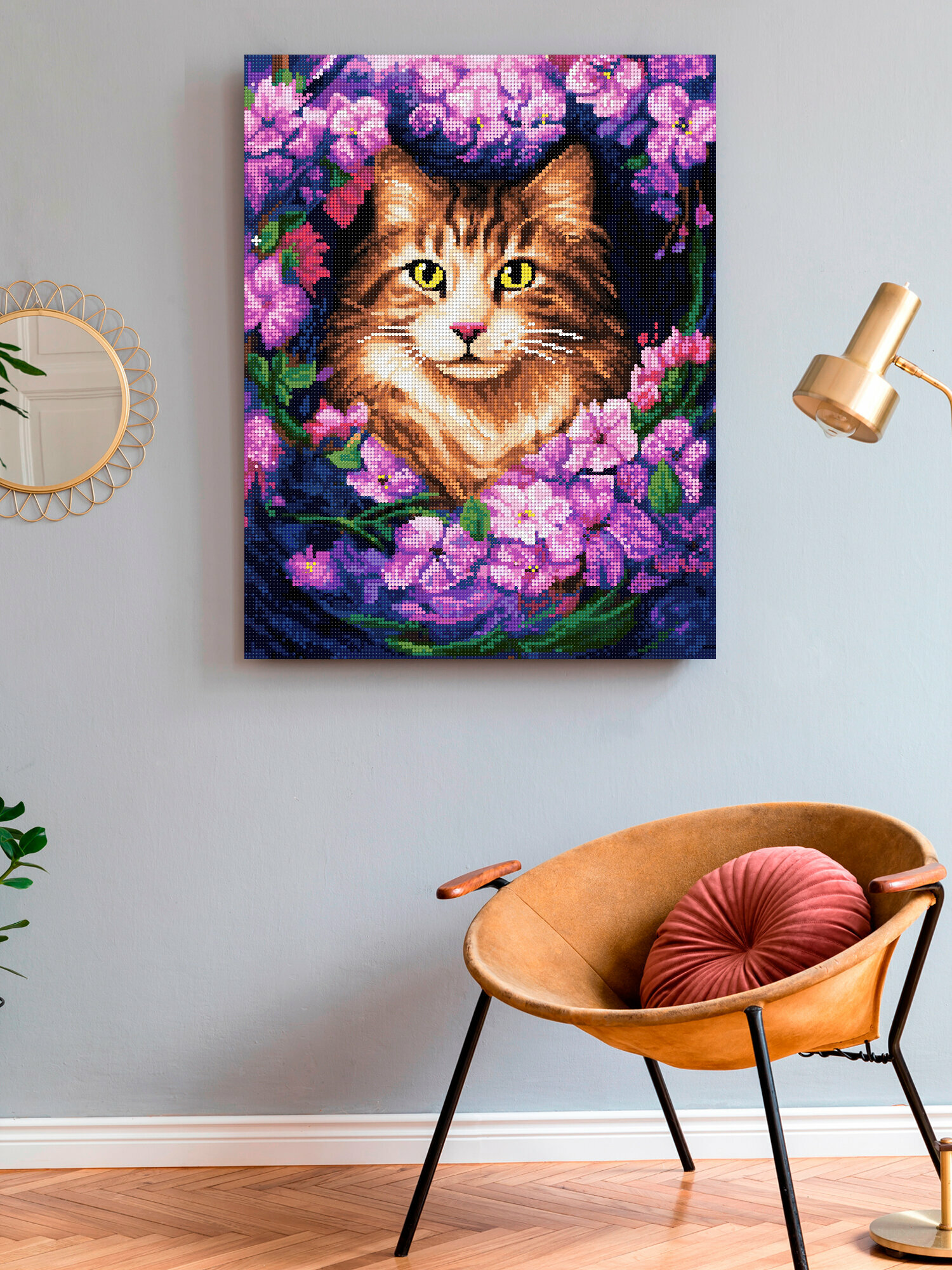 10 цен на Алмазная мозаика на деревянном подрамнике 40х50 см "Котик в цветах" Алмазная вышивка. Картина стразами