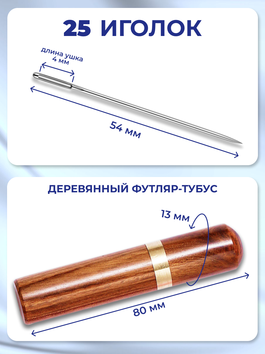 Иглы швейные с большим ушком, набор 25 иголок для шитья, иглы 54 мм информация: