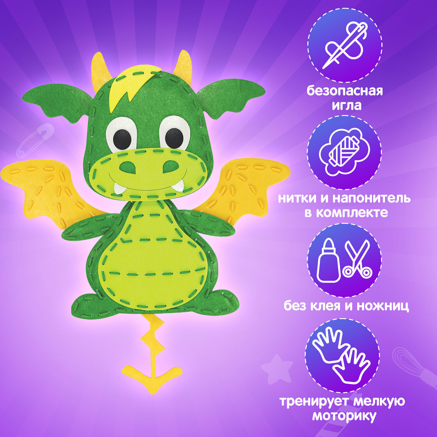 Набор для шитья игрушки куклы из фетра детский для девочек, подарок для творчества и рукоделия, швейный набор для детей, Юнландия Дракон, 664730 информация: