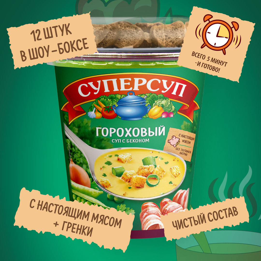 Суперсуп "Гороховый с беконом+гренки" 45г/12 шт в кор (ТУ-2... информация: