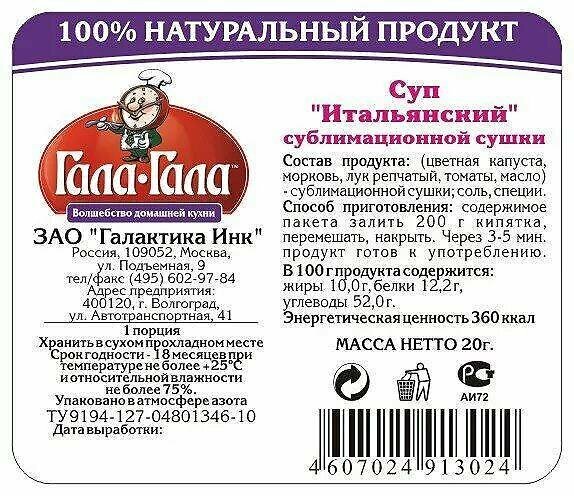Суп Итальянский "Гала-Гала" 20 г Комплект 3 штуки информация: