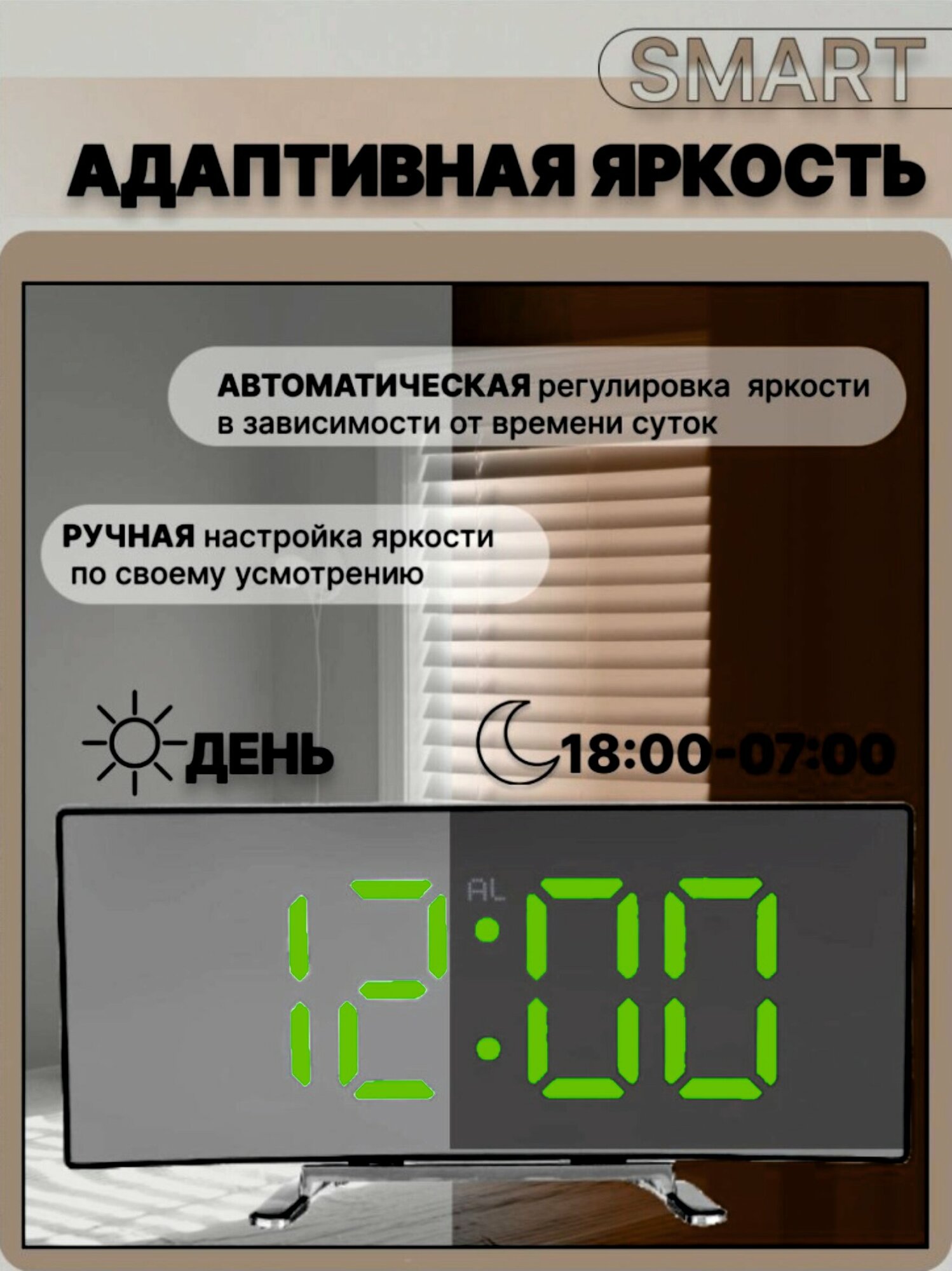 10 цен на Часы электронные будильник с зеркальным табло / цифровые часы настольные зеленые цифры/ будильник / электронные часы