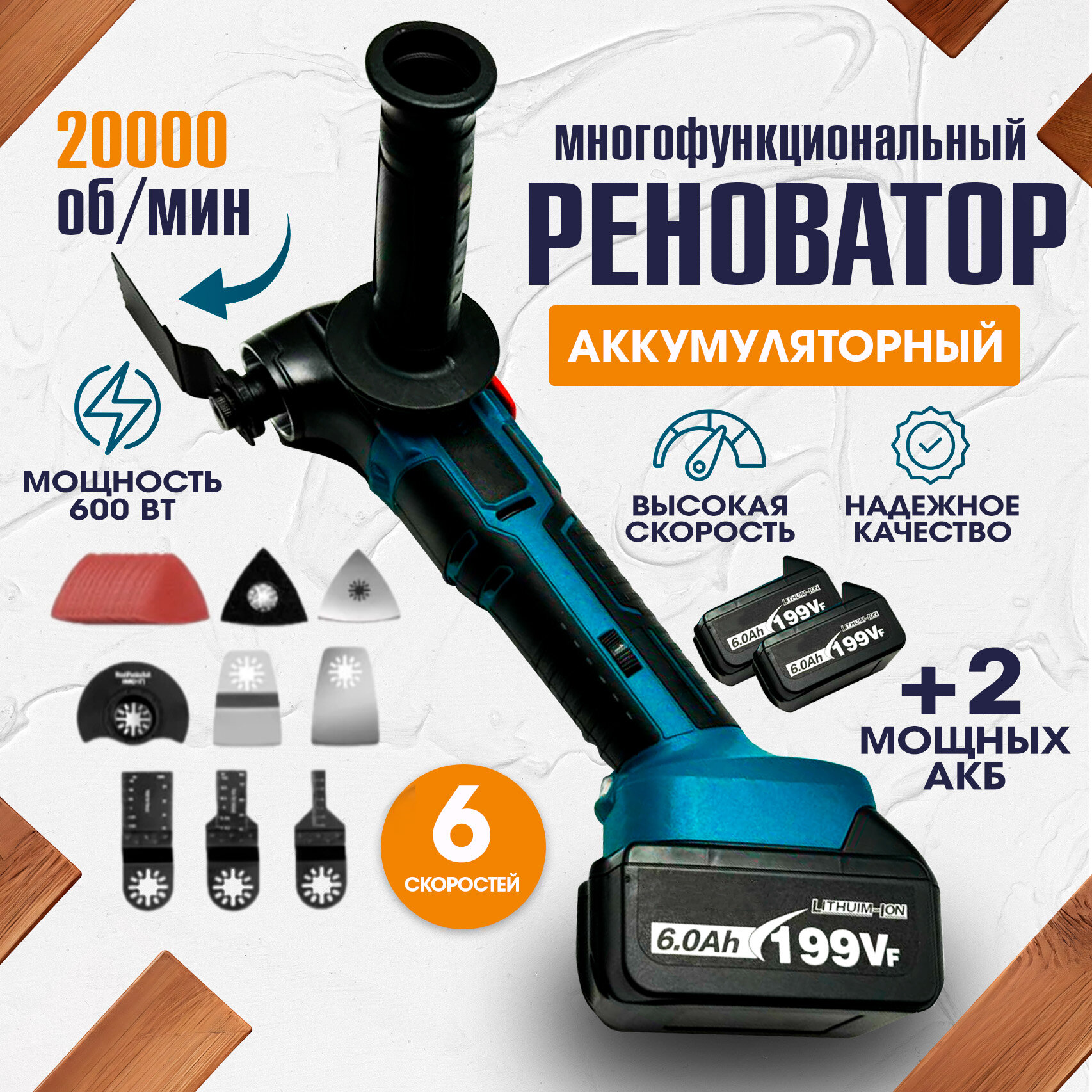 Многофункциональный аккумуляторный реноватор 7 насадок, 20000об/мин информация: