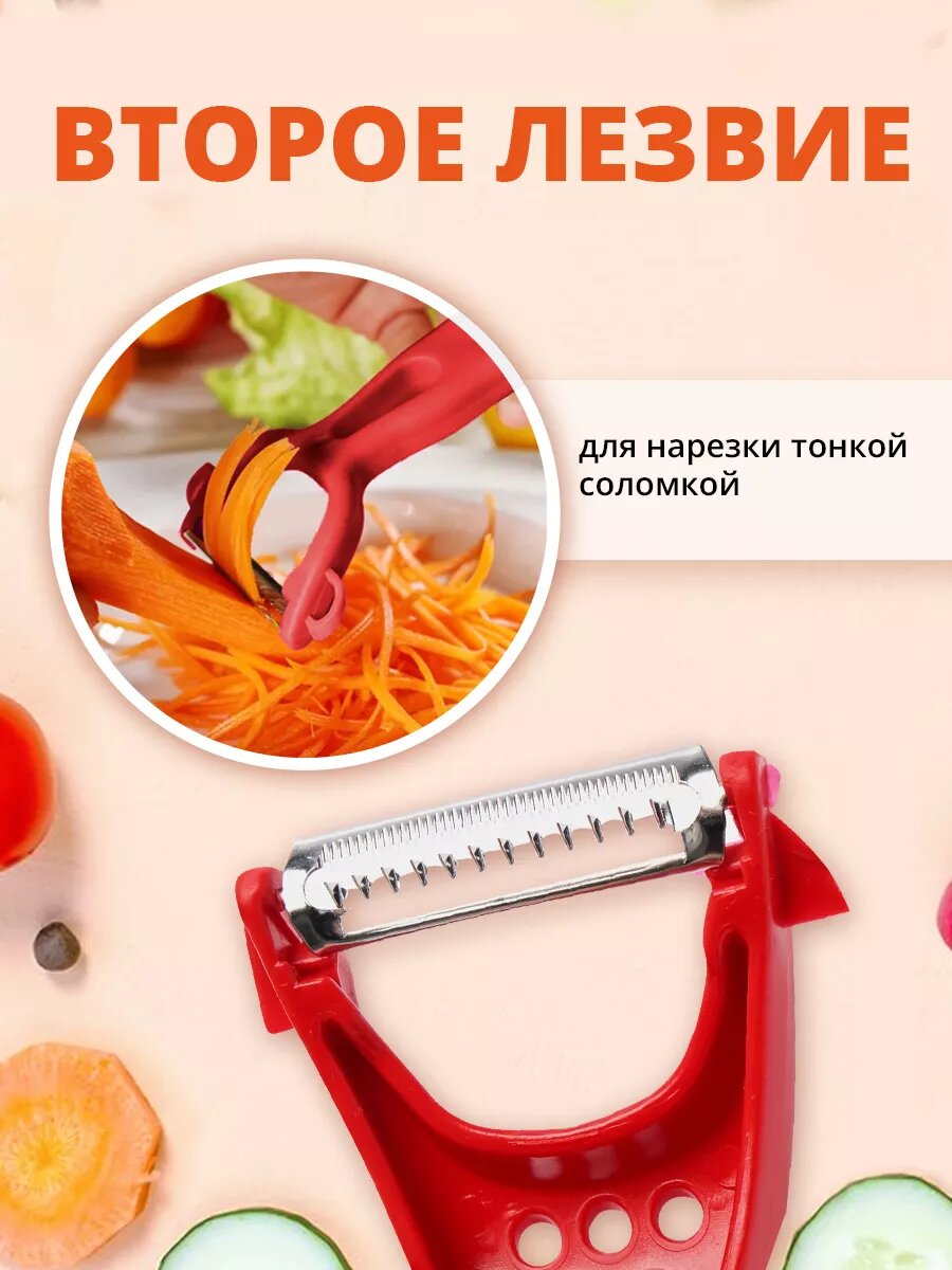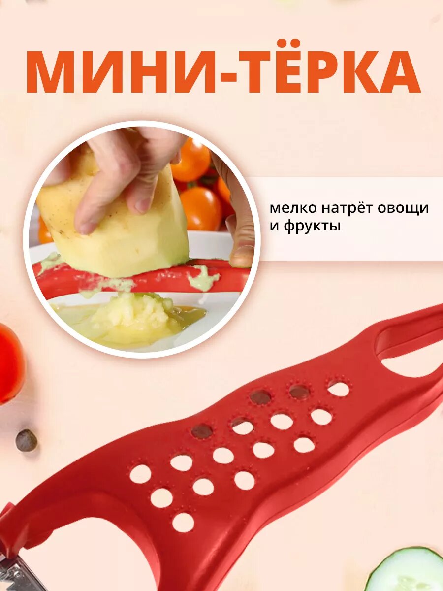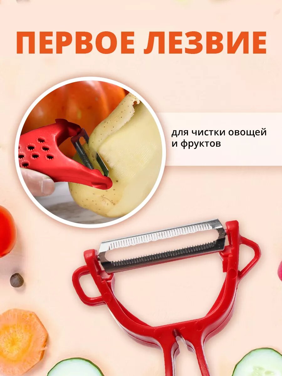 Отзывы на Овощечистка ручная, универсальный нож для чистки, нарезки овощей 5в1, цвет красный