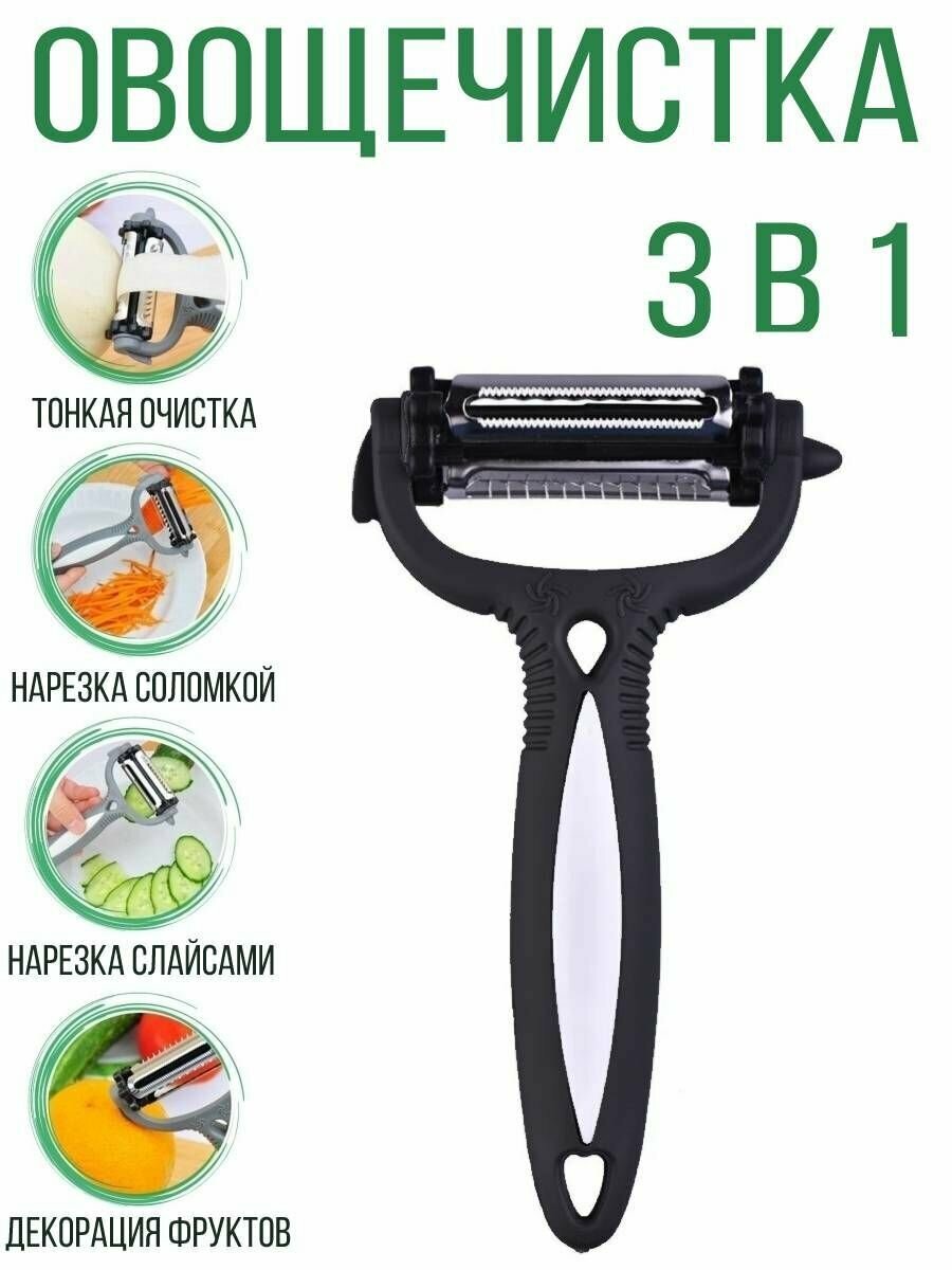 10 цен на Фрукто - овощечистка универсальная 3в1, с 3мя видами лезвий для овощей и фруктов, черный