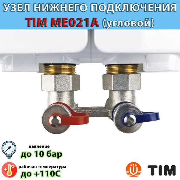 Узел угловой для нижнего подключения радиатора с комплектом адаптеров TIM ME221AC