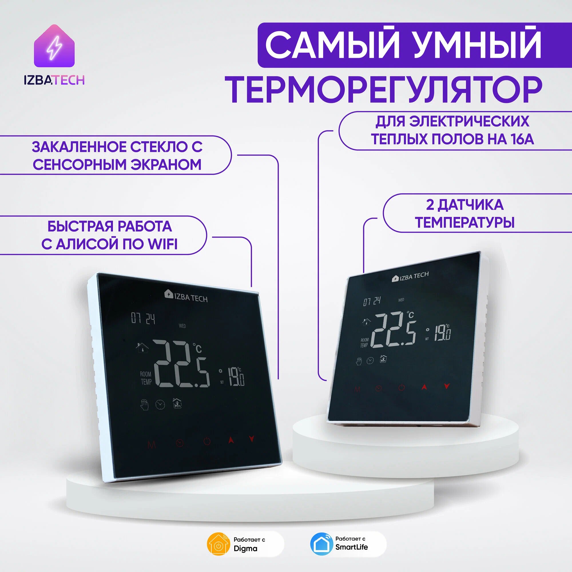 Умный Терморегулятор для Теплых Полов с WI-FI для Алисы, Зеркальный Термостат информация: