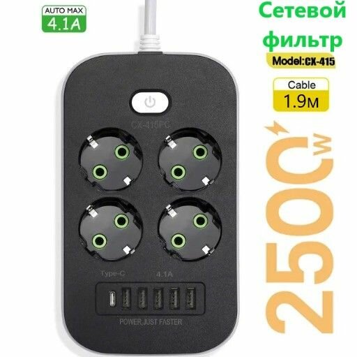 10 цен на Сетевой фильтр удлинитель на 4 розетки с USB, USB TYPE-C