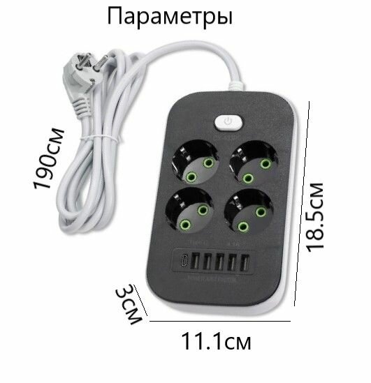 Сетевой фильтр удлинитель на 4 розетки с USB, USB TYPE-C информация:
