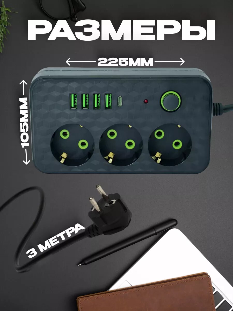 10 цен на Сетевой фильтр удлинитель 3 метра USB и Type C