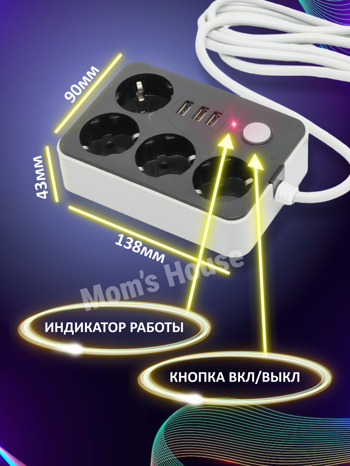 Отзывы на Сетевой фильтр с предохранителем с usb и защитой от напряжения кабель 2 метра 4 розетки Cиловой удлинитель квадрат
