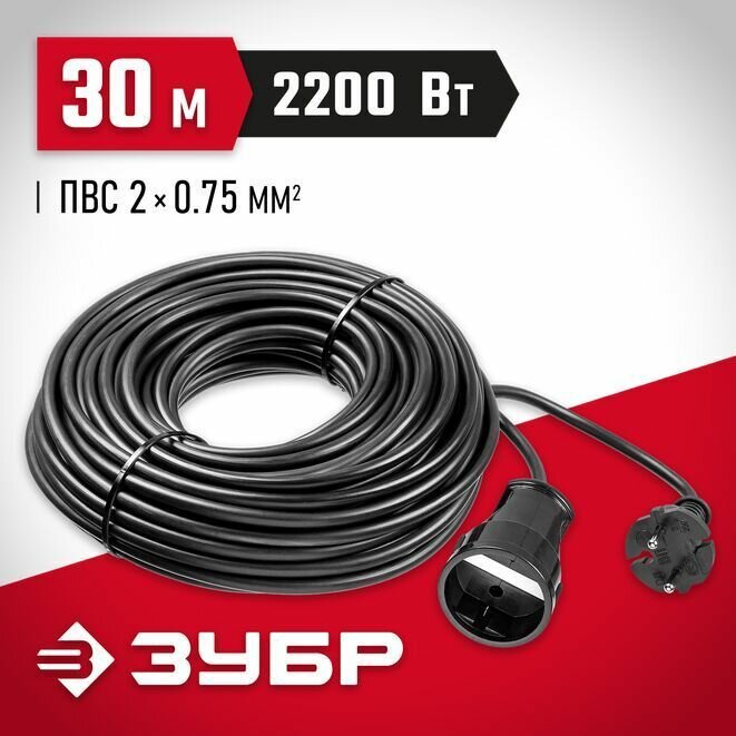 Удлинитель силовой Зубр 55023-30 2x0.75кв.мм 1розет. 30м ПВС 10A без катушки черный информация: