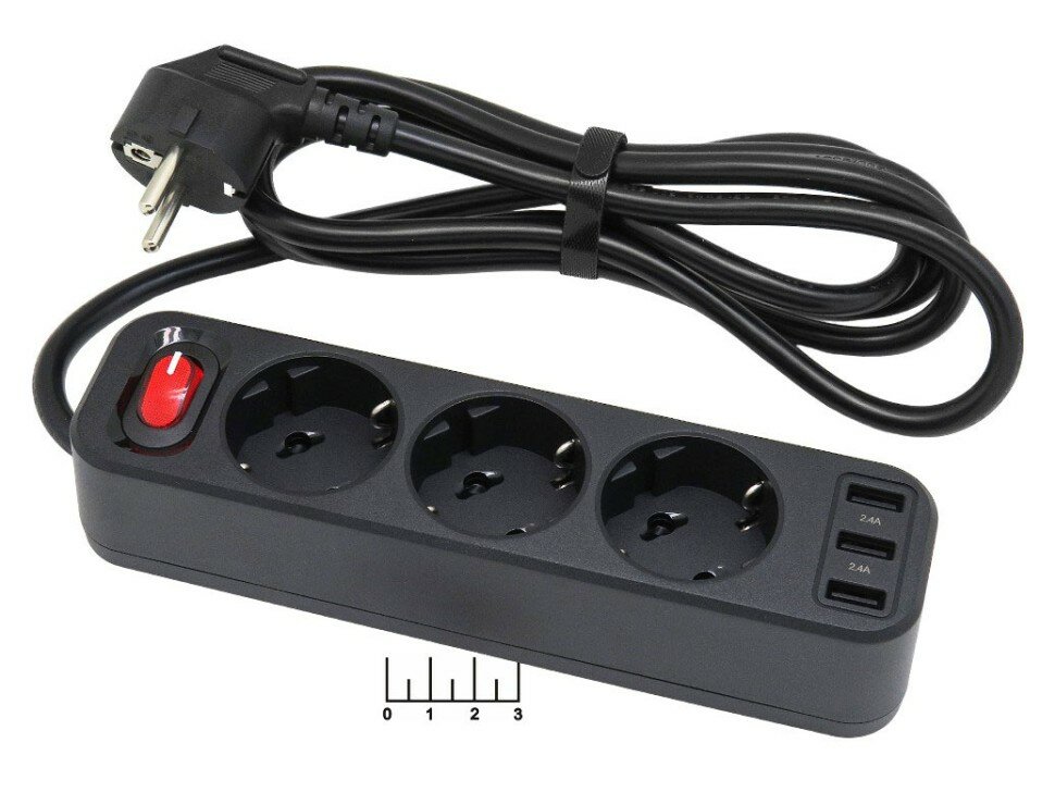 Сетевой фильтр HOCO NS2 на 3 розетки 3xUSB, 2.4А, 1.8м (черный) информация: