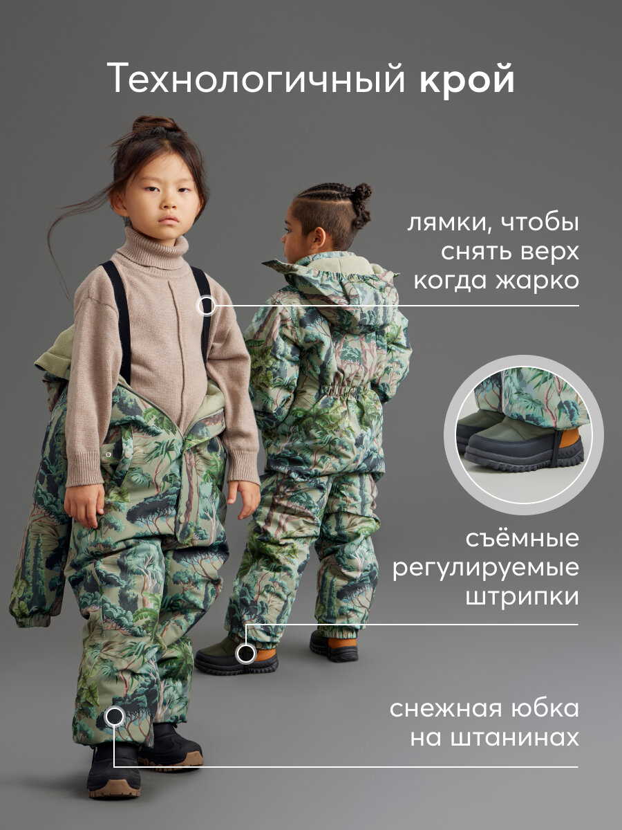 89077, Комбинезон детский Happy Baby, для зимы и межсезонья, растительный принт, зеленый, рост 116-122 6 139 ₽