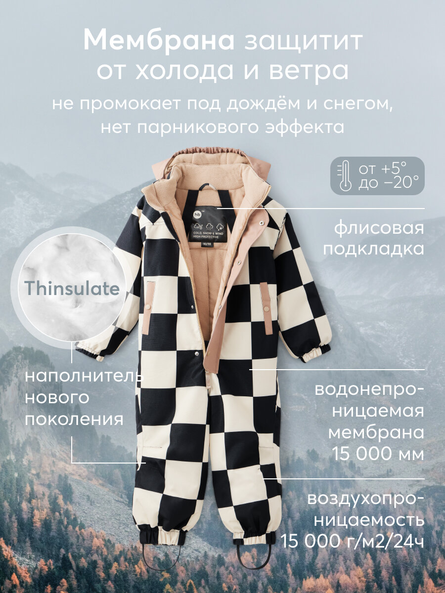 Отзывы на 89077, Комбинезон детский Happy Baby, для зимы и межсезонья, в клетку, бежевый с черным, рост 116-122