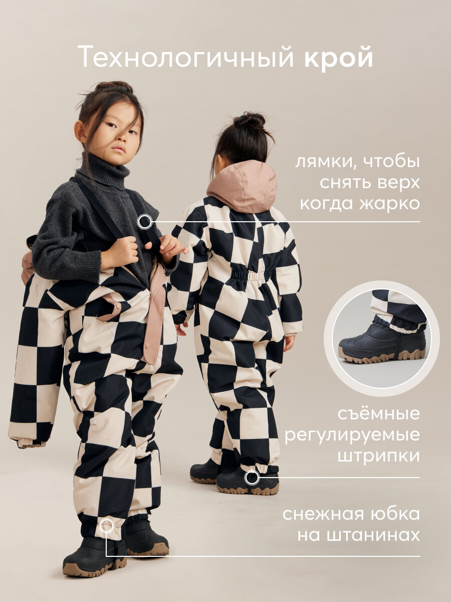 89077, Комбинезон детский Happy Baby, для зимы и межсезонья, в клетку, бежевый с черным, рост 116-122 информация: