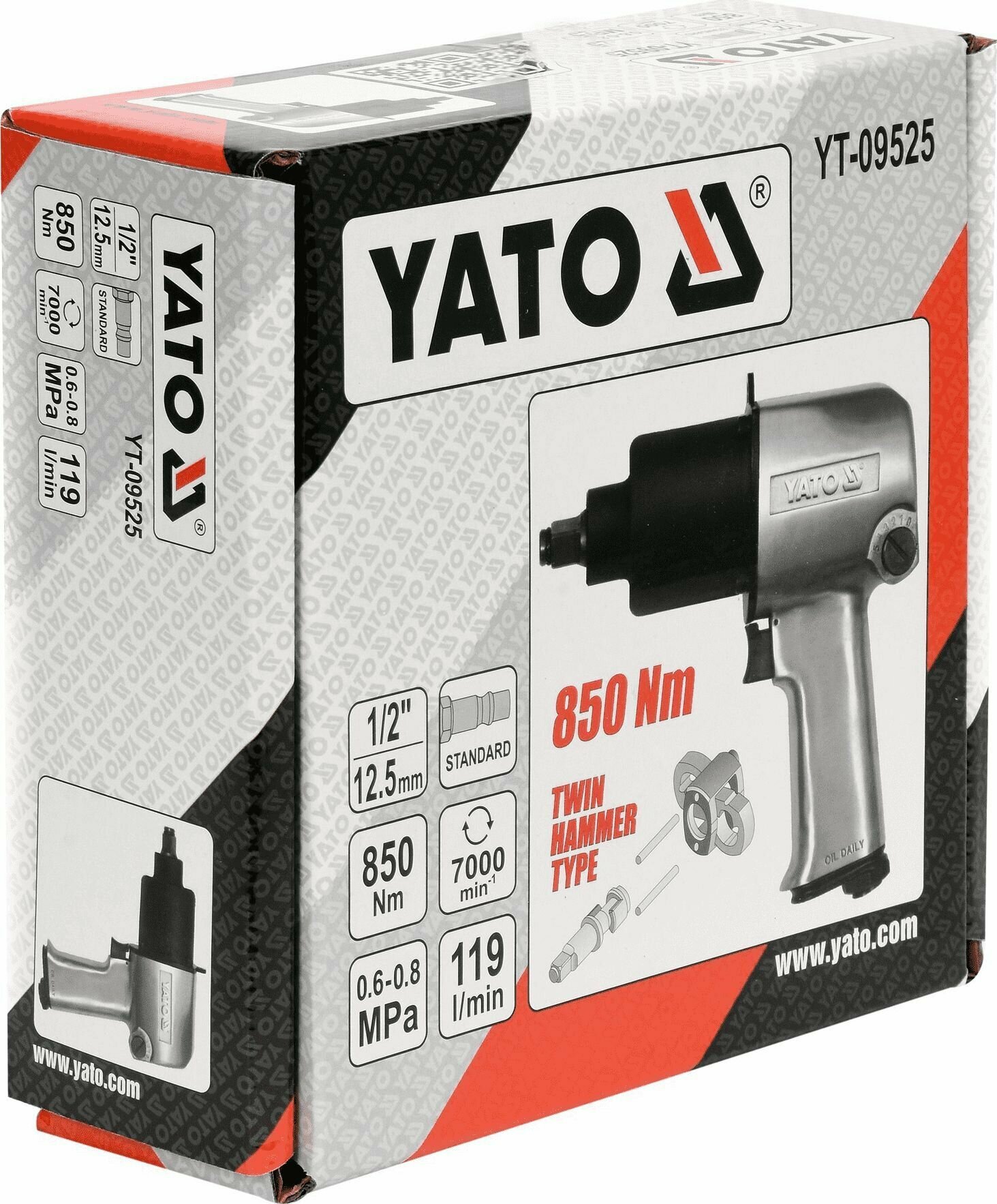 Пневмогайковерт 1/2 850 Нм 119 Л/Мин 7000 Об/Мин 0,6-0,8 Mpa YATO арт. YT-09525 информация: