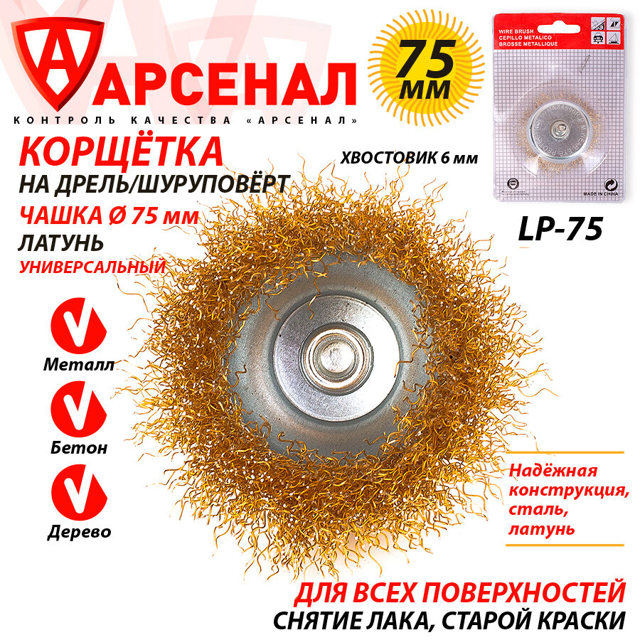 Отзывы на Корщетка на дрель чашка (75мм) шпилька 6 мм, латунированная проволока, IP-75
