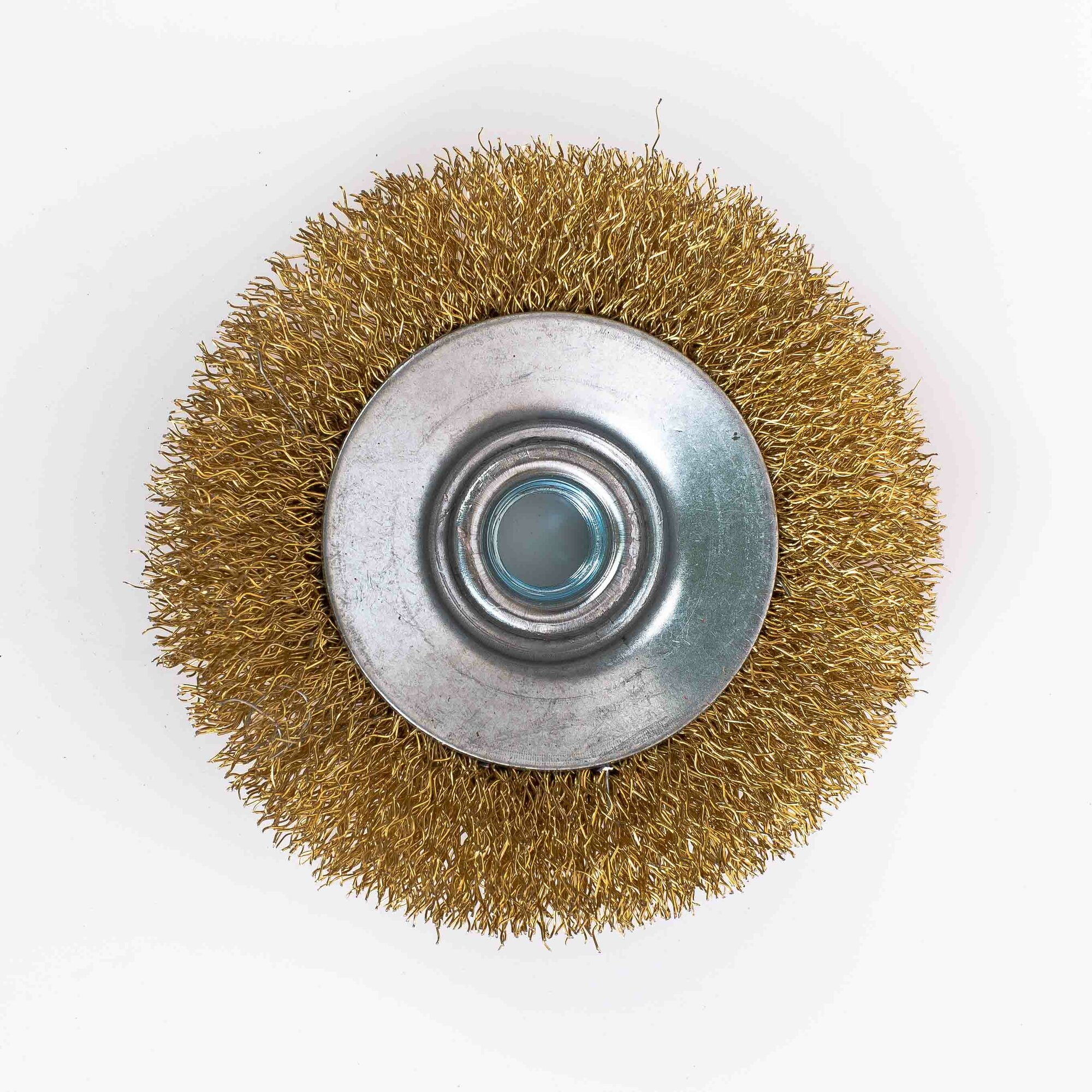 10 цен на Корщетка на УШМ Тарелка (115мм) Гайка М14, латунированная проволока, IP-115