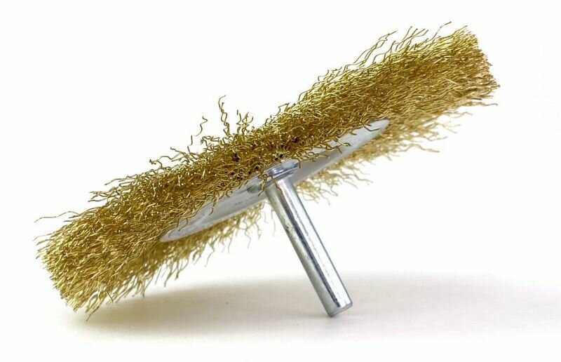 Отзывы на Щетка дисковая c хвостовиком для дрели, гофрир-ая латунир-я сталь D100X10X0,3X6 мм