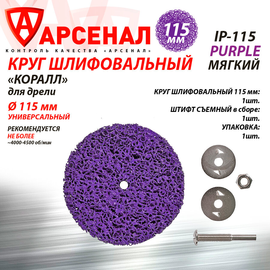 Диск шлифовальный 115мм "коралл" для дрели (мягкий), IP-115Purple информация: