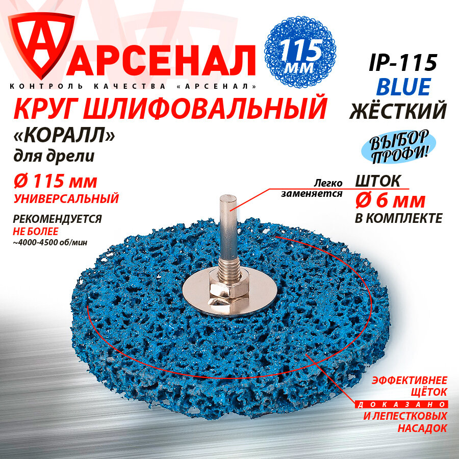 10 цен на Диск шлифовальный 115мм "коралл" для дрели (жесткий), IP-115blue