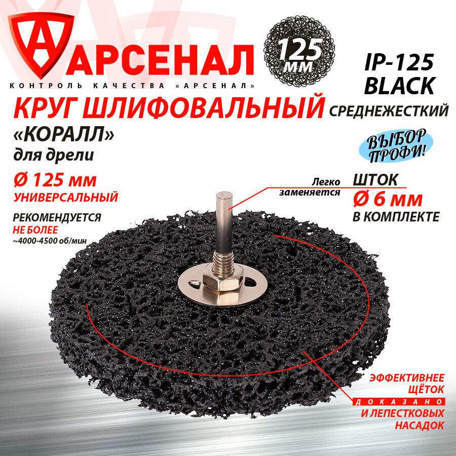 10 цен на Диск шлифовальный 125мм "коралл" для дрели (среднежесткий), IP-125black