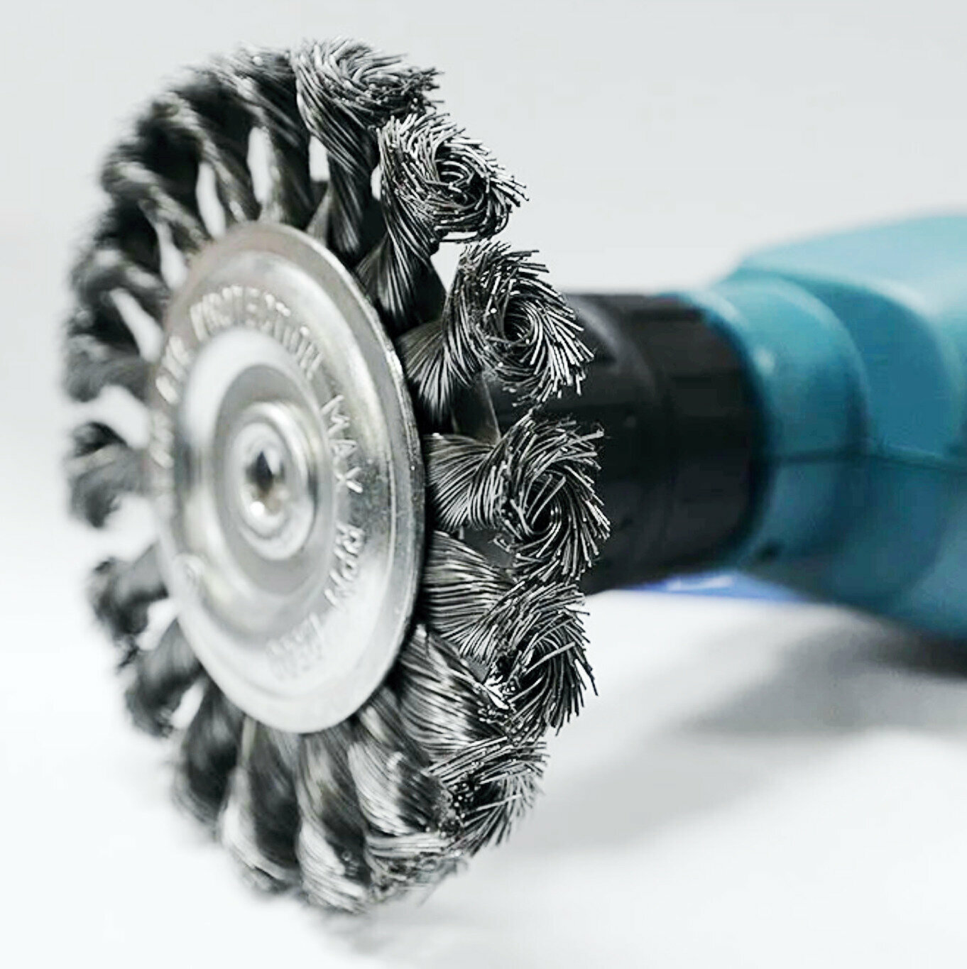 10 цен на Щетка зачистная по металлу.дисковая со шпинделем износостойкая для снятия ржавчины краски 20000об.мин для дрели шуруповерта 8мм,100 мм 1шт