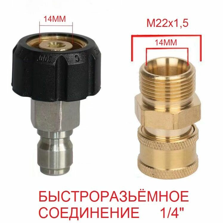 Быстроразьемное соединение 1/4" QUICK CONNECT-М22х1.5 фитинг 14 мм.(адаптер для шланга мойки высокого давления) информация: