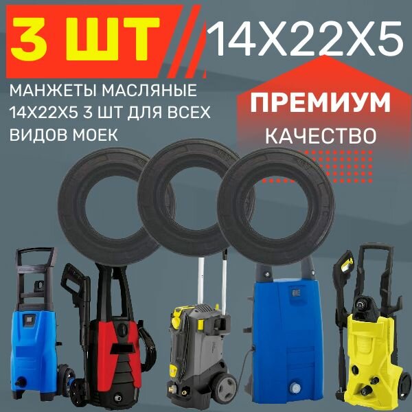Манжеты масляные 14X22X5 3ШТ армированные, уплотнения, запчасти, сальники для KARCHER STIHL CHAMPION STAVTOOL и другие мойки.. информация: