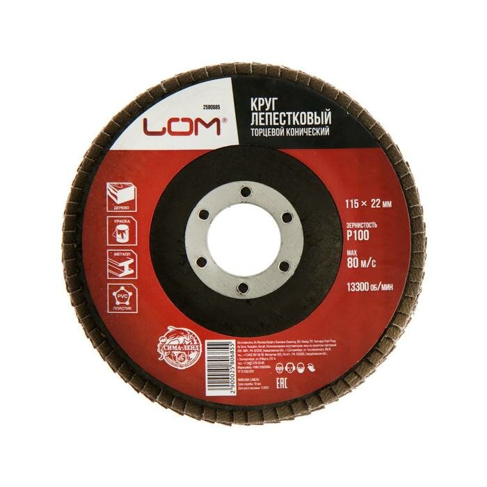 Круг лепестковый торцевой конический ЛОМ, 115 х 22 мм, Р100 информация: