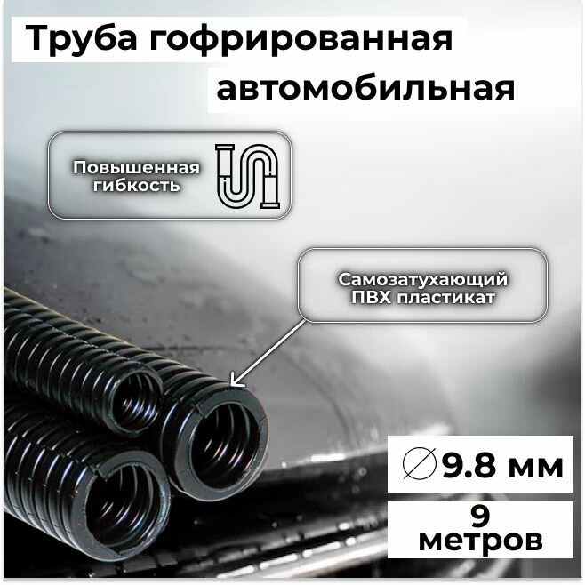 10 цен на Гофра автомобильная для проводки "Auto Standart" гибкая легкая разрезная, внутренний d9.8мм - 9м