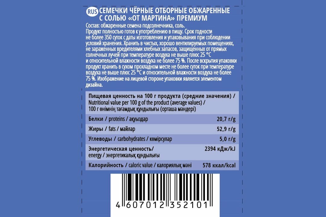 От Мартина Семечки Отборные, с морской солью, 300 гр информация: