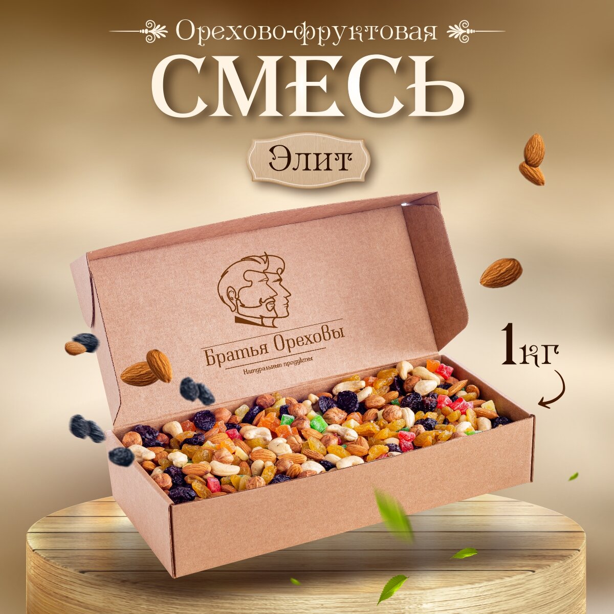 10 цен на Смесь орехов и сухофруктов Элит (Миндаль, кешью, фундук, цукаты, изюм) Братья Ореховы, 1кг