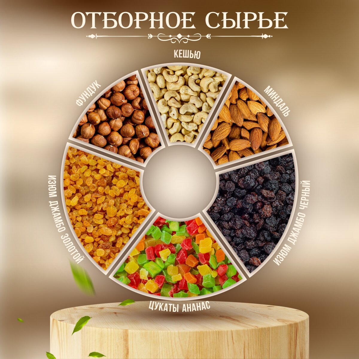 Смесь орехов и сухофруктов Элит (Миндаль, кешью, фундук, цукаты, изюм) Братья Ореховы, 1кг информация: